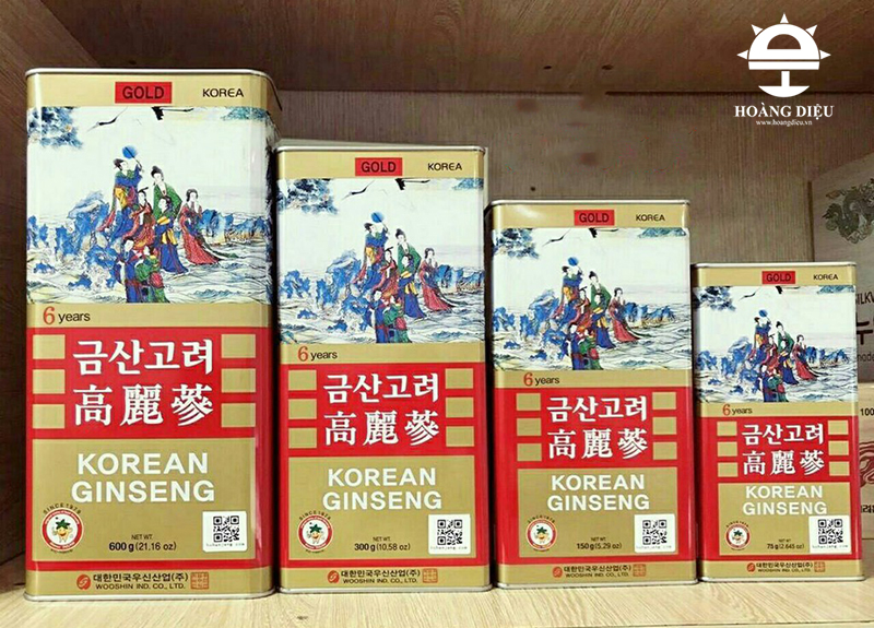Sâm khô Hàn quốc thường được phân loại theo hình dáng, kích thước chất lượng của từng củ sâm, được đóng thành hộp thiếc với nhiều trọng lượng khác nhau, phù hợp với nhu cầu của người sử dụng. Các kích thước hộp sâm phổ biến bao gồm kích thước: 150g; 300g; 600g…Tại thị trường Việt Nam Sâm khô Hàn quốc dạng hộp thiếc 150g là kích thước phổ biến nhất, được nhiều người tiêu dùng tìm kiếm.